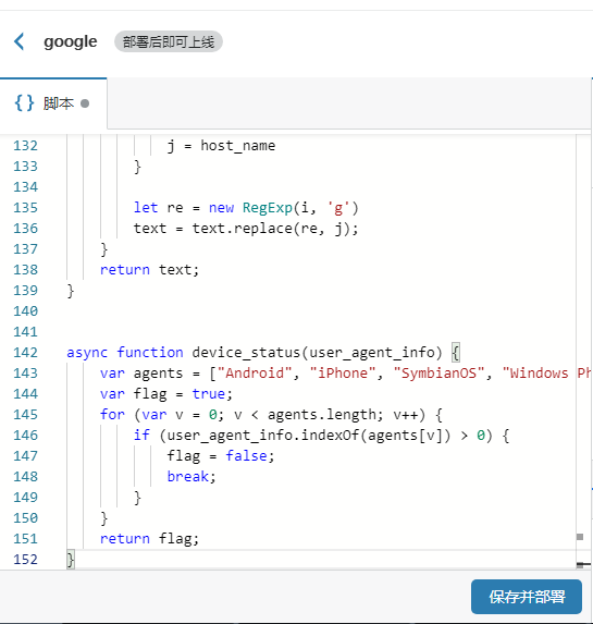 复制 https://raw.githubusercontent.com/EtherDream/jsproxy/master/cf-worker/index.js 的内容到左侧代码(脚本)区域
